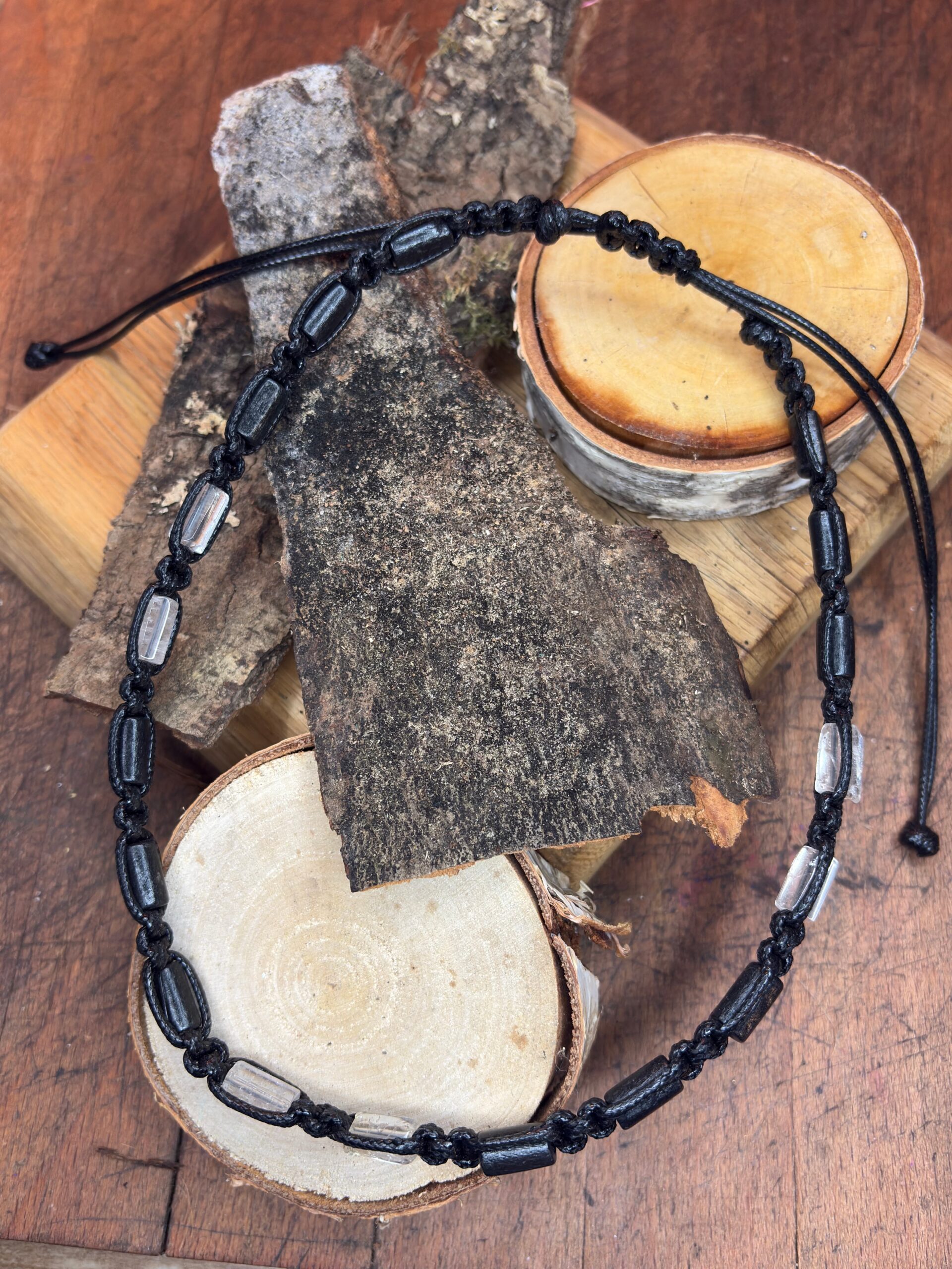 Naszyjnik Z Kryształem Górskim I Drewnem Hebanowym