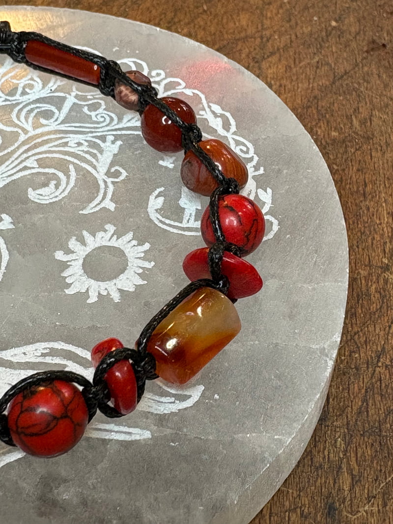 Ręcznie wykonana bransoletka inspirowana Trygonem Ognia, harmonijnym połączeniem trzehc znaków zodiaku: Barana, Lwa i Strzelca. W astrologii układ ten symbolizuje energię działania, siłę woli i wewnętrzny ogień.
