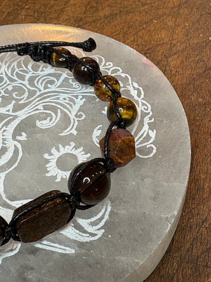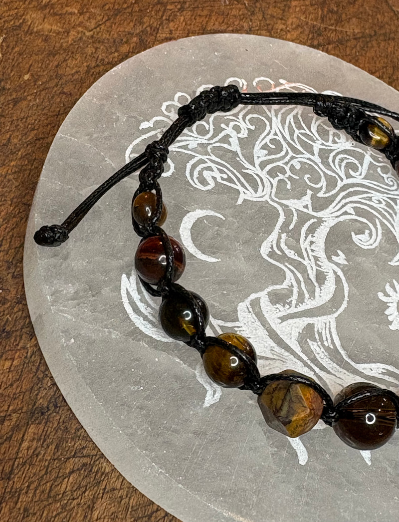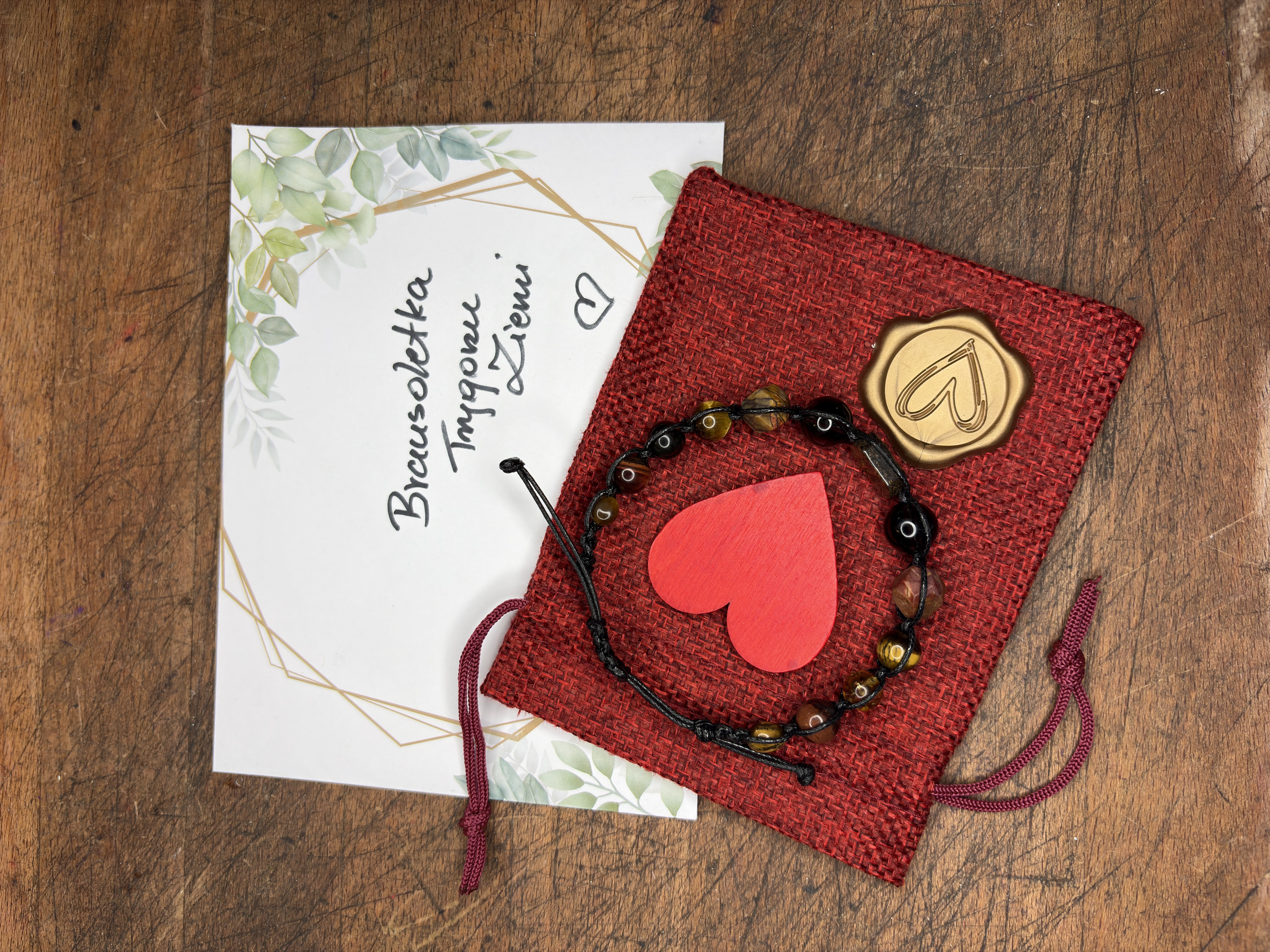 🜃 Minerały: Bronzyt (tarcza), Kwarc dymny (pewność siebie), Bawole oko (siła), Tygrysie oko (ochrona), Jaspis Mokait (transformacja).