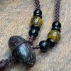 Całość dopełnia kombinacja koralików żywicznych oraz kul Tygrysiego Oka, których ciepły, brązowo-złoty ton wprowadza ziemistą głębię i stabilność.