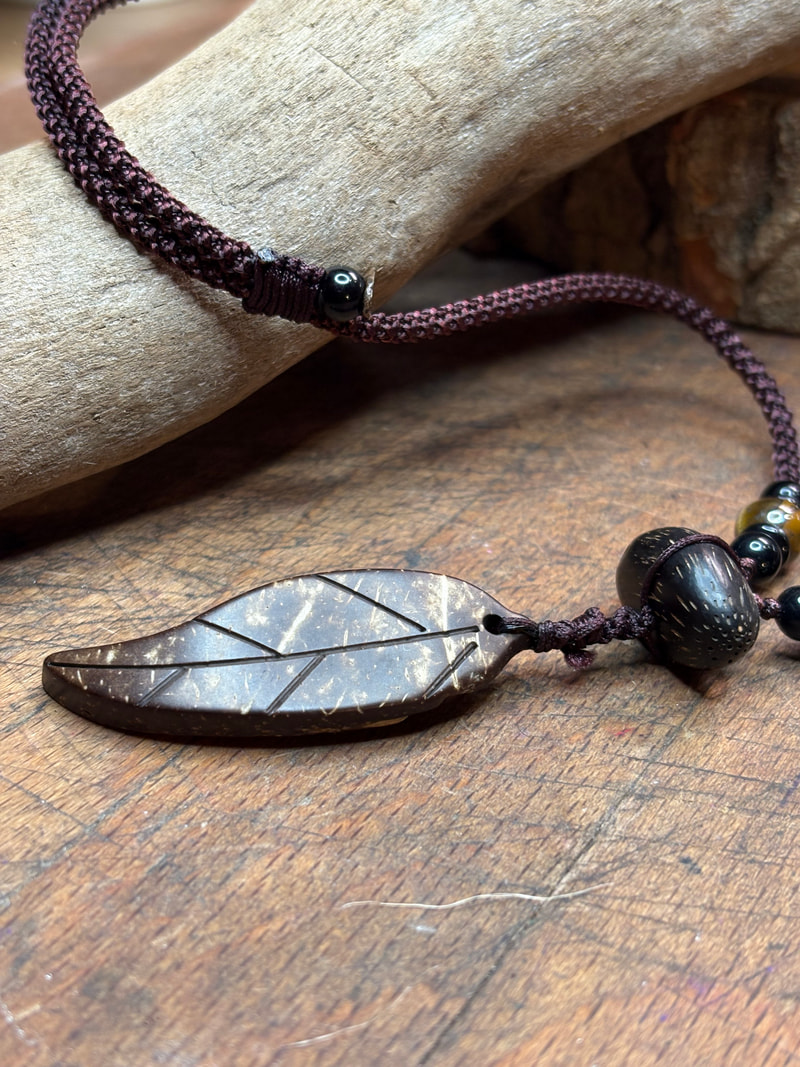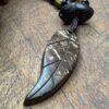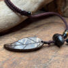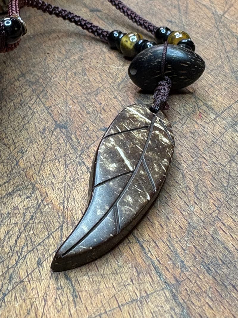 Talizman męski z centralnie zawieszonym liściem żywicznym.