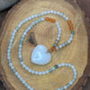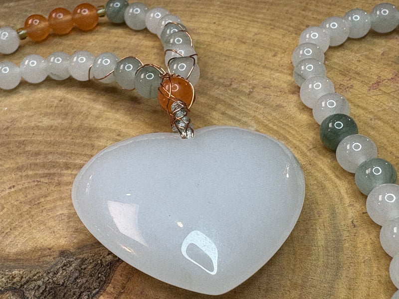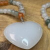 Talizman z centralnie zawieszonym sercem z minerału Kwarc mleczny.