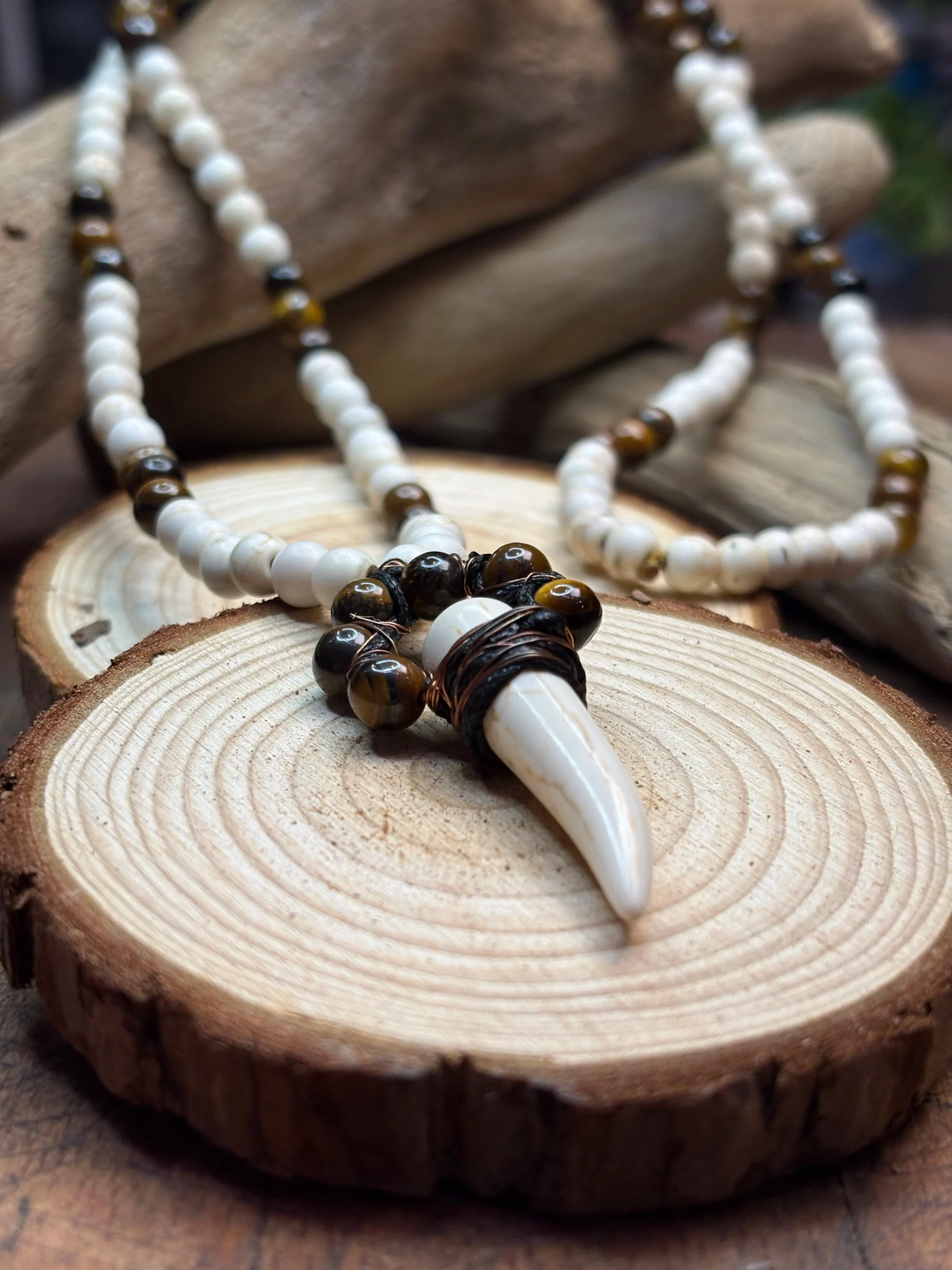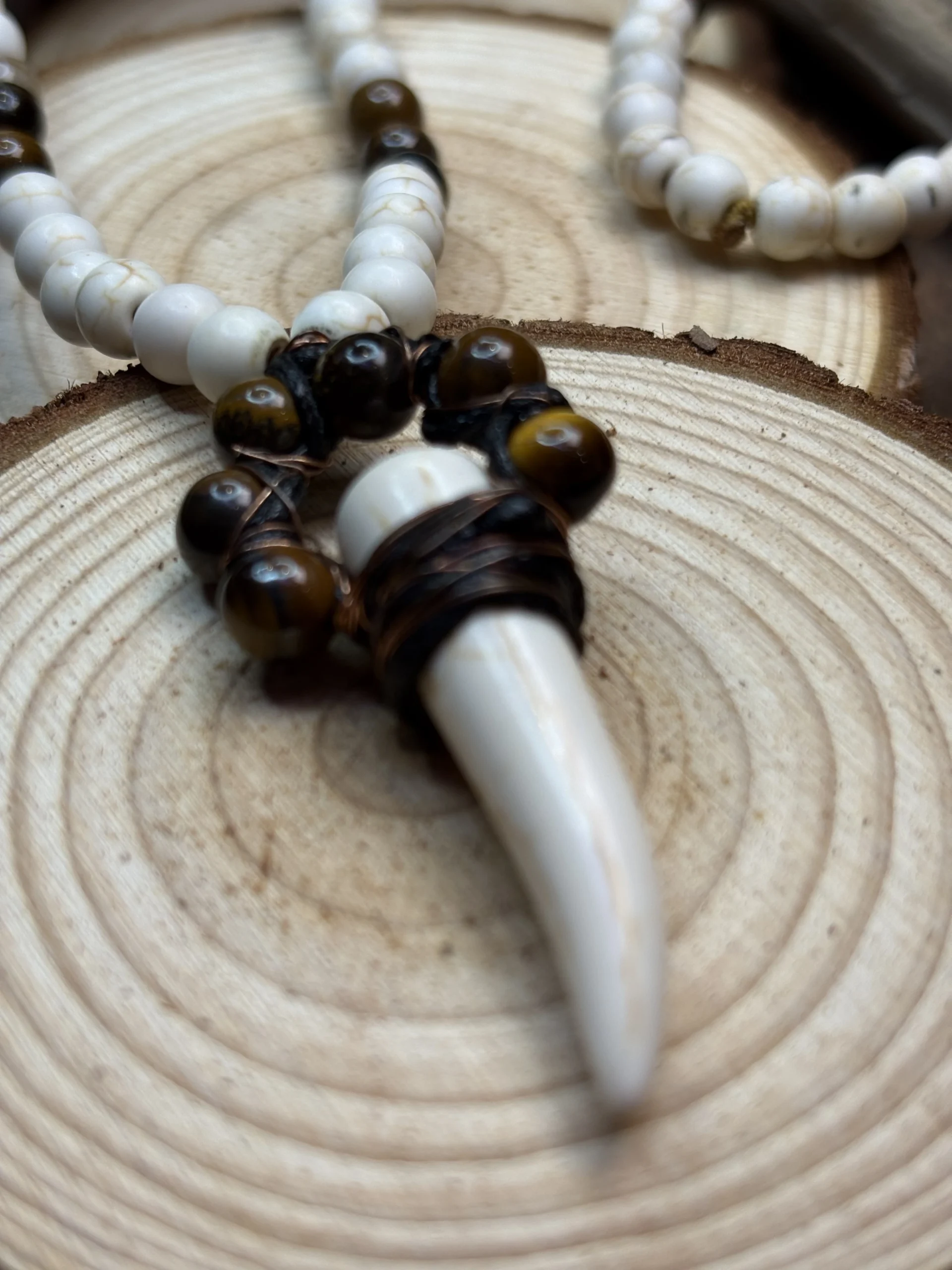 Wisior Z Kłem Howlit W Towarzystwie Tygrysiego Oka