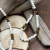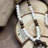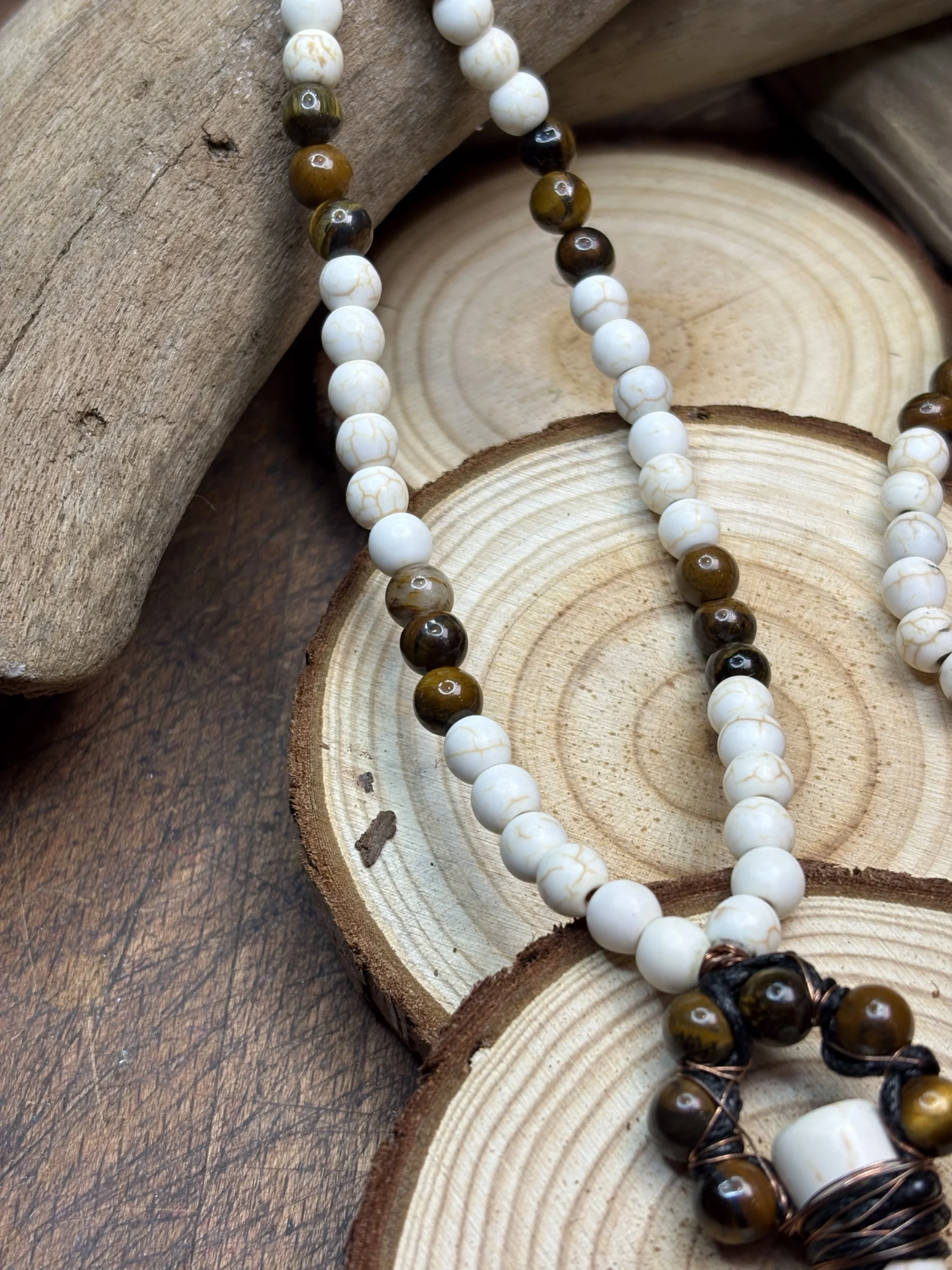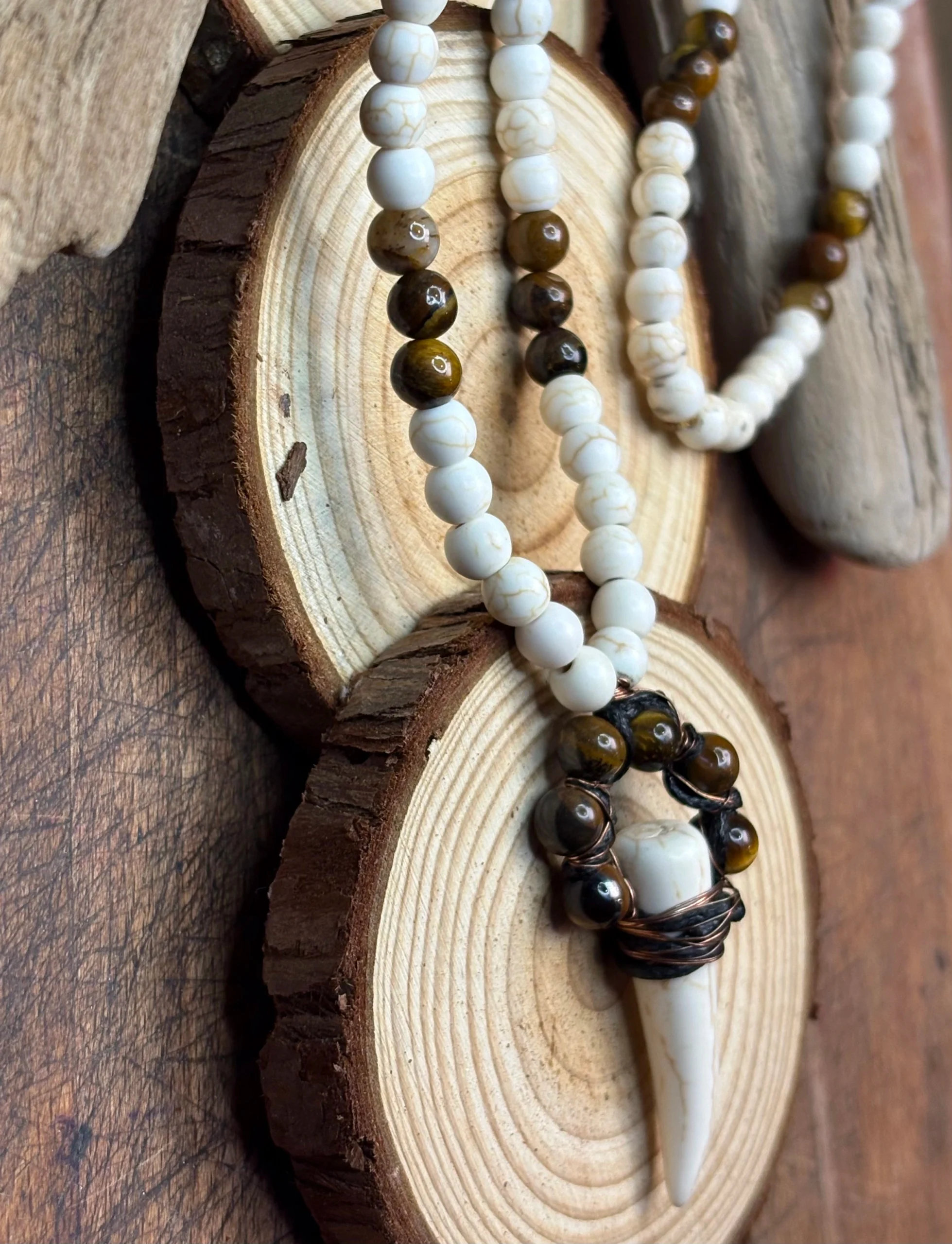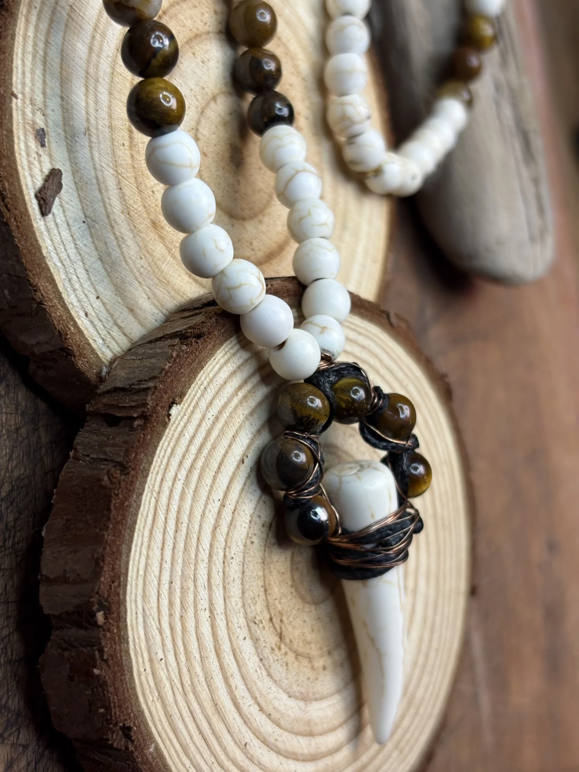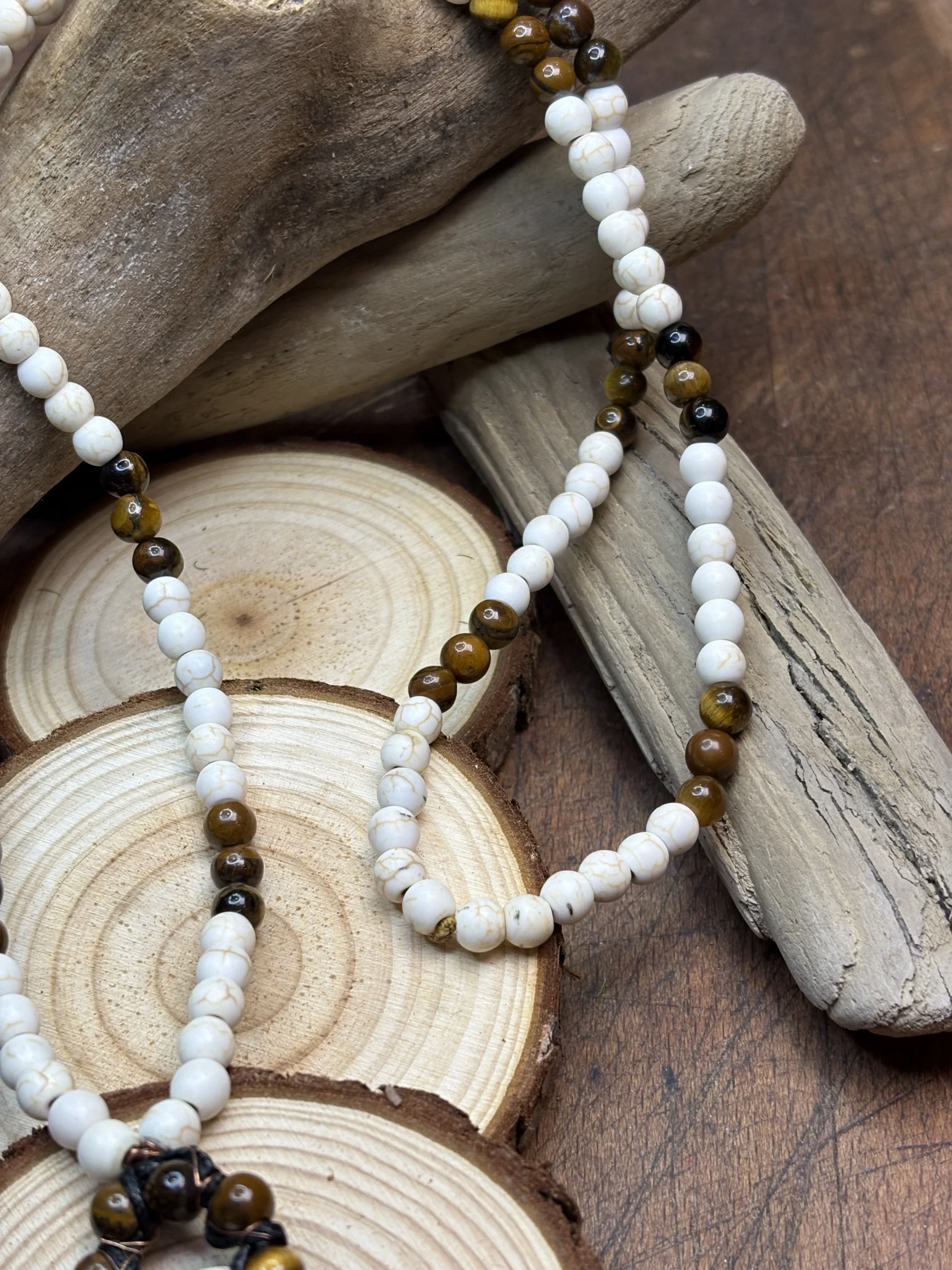 Część od kła po całości to zbiór koralików Howlit i Tygrysiego oka, który skomponowałam dla wyjątkowego mężczyzny.