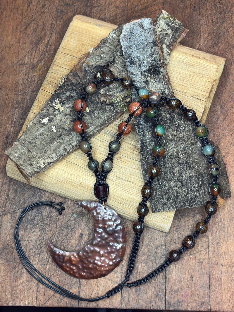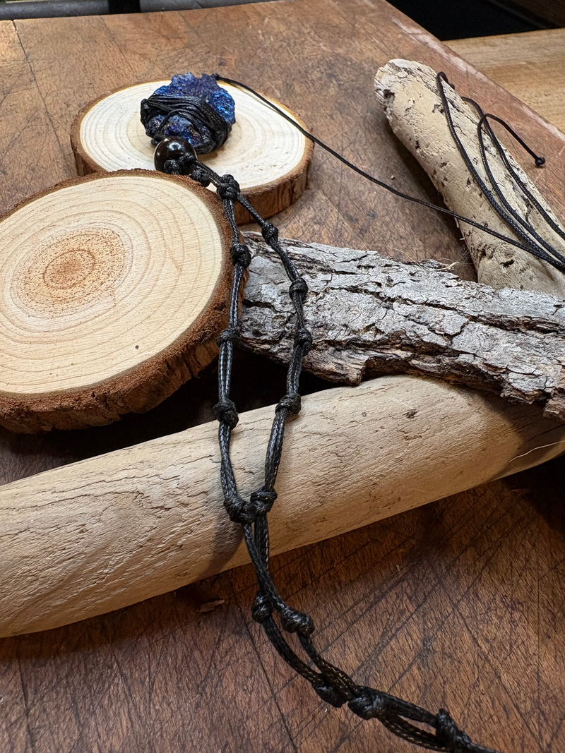 Ten kamień misternie oplotłam w czarny sznurek jubilerski.