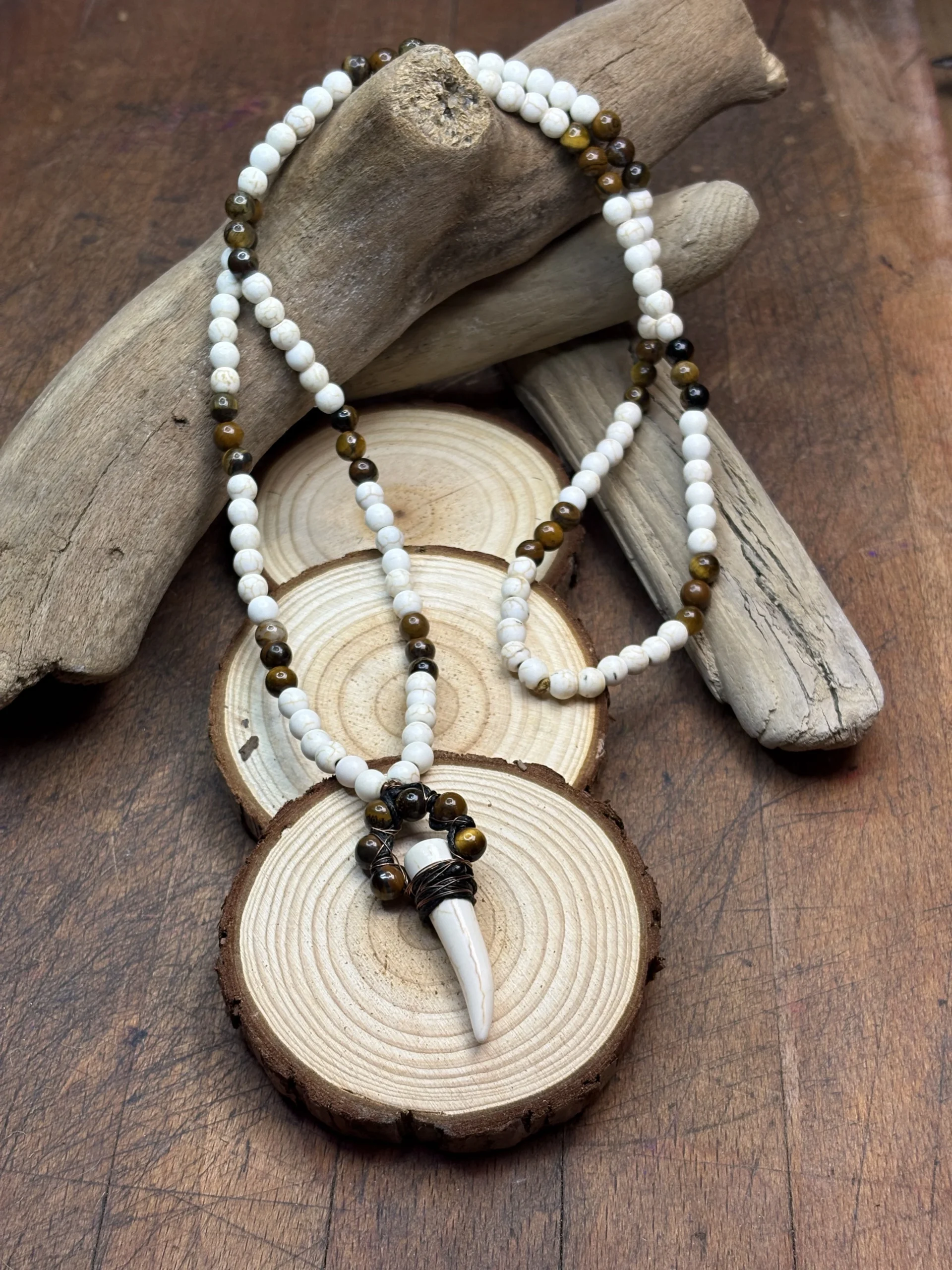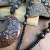 Wykonałam go techniką ręcznego plecenia i nawlekania poszczególnych minerałów.