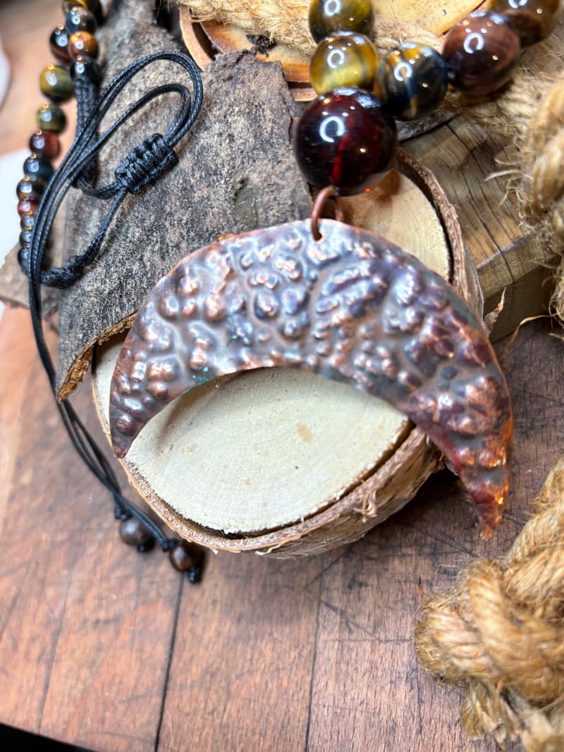 Stworzyłam Cię jako Surową Szamankę, Młotkowaną Lunę z miedzi, jak Księżyc wykuty ogniem i ziemią. Jej ciepły blask nosi w sobie siłę żywiołów i pierwotną kobiecą energię.